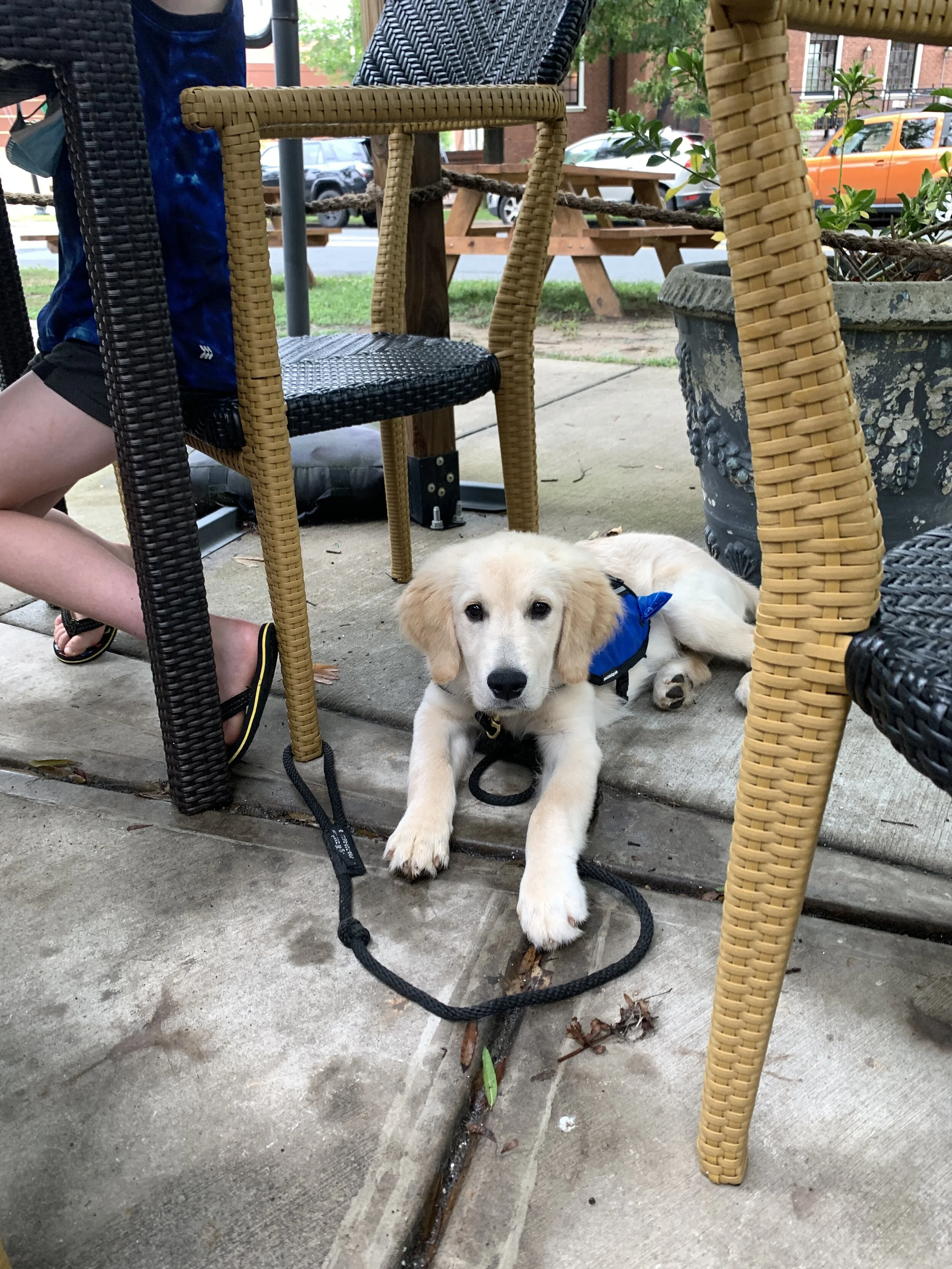 Archer is a brave, sweet, goofy guy who is super smart and highly trainable. At home, he’s a 4 month old puppy who loves to play and cuddle. While working in his vest he is very focused and calm, confidently ignoring distractions and attuning to “his boy.” During public access training Archer regularly receives high praise from passersby for his remarkable demeanor. He knows 20+ commands and we continue his daily training at home in preparation for advanced training by a professional service dog trainer.